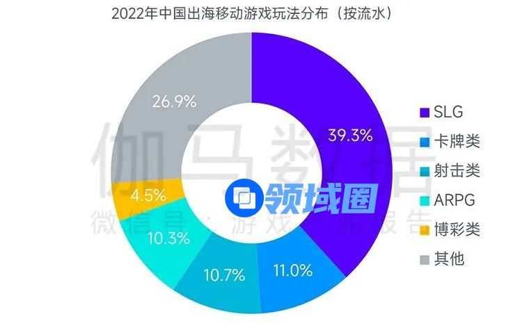 2022年海外重要移动游戏市场中,中国移动游戏在优势赛道中市场份额均取得稳健增长。从出海移动游戏玩法流水分布来看,SLG稳居中国出海移动游戏第一,品类流水占比近四成,远高于其他品类。在多年发展下,中国SLG游戏已在海外移动游戏市场取得了极大优势,截至2022年末,中国出海SLG流水已占海外重要移动游戏市场该品类总流水的九成以上。