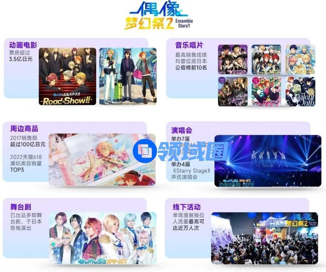 乐元素海外布局主要围绕IP展开。“偶像梦幻祭”IP发展上采取更贴合日本偶像文化的企划模式,随着游戏正式推出,乐元素陆续针对IP推出了漫画、动画、舞台剧、演唱会等IP衍生内容。丰富的游戏外内容一方面可以对“偶像梦幻祭”的剧情进行扩充,让游戏内的偶像角色形象更为立体;另一方面可满足用户的情感需求,让用户在游戏外也有机会与角色进行互动,维系用户热情;此外,IP衍生内容的推出也有助于提升IP知名度,吸纳更多新用户。日本市场偶像类IP及产品竞争激烈,而“偶像梦幻祭”仍能多年稳居头部位置,进一步显示出乐元素优异的IP打造及运营能力。