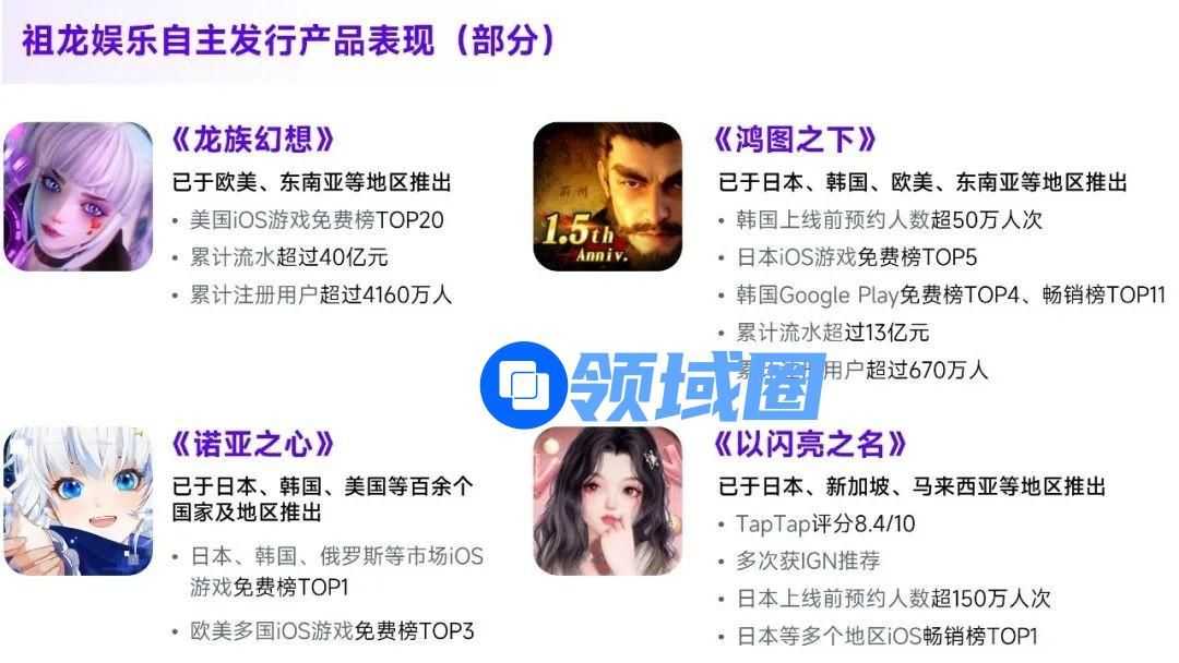 游族也积极推动自研的南派三叔正版授权的《新盗墓笔记》出海欧美、东南亚、中国港台等地区,产品上线中国港台地区首周,便稳居该地区双免费榜TOP1,并登上双畅销榜TOP10。此外公司海外的《战火与永恒》《圣斗士星矢觉醒:十二宫骑士》《华武战国》以及《权力的游戏 凛冬将至》PC版等不同类型产品保持稳健运营,进一步强化了游族在全球范围内的产品竞争力。