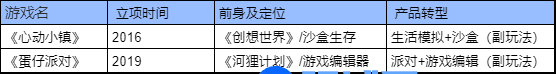 目前真正熬过长夜、触达玩家认知的UGC+游戏产品,目前暂时除了网易已上线的《蛋仔派对》,还有二测结束的《心动小镇》。它们的制作经历同样曲折,并且同样在2020年左右经历过一次产品转型,并且最终选择了不同的热门游戏赛道,还有着相似的美术建模风格。