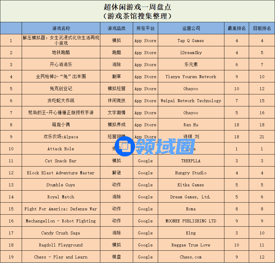 超休闲游戏:《箱庭小偶》冲上TOP20,美式“战狼”游戏大热