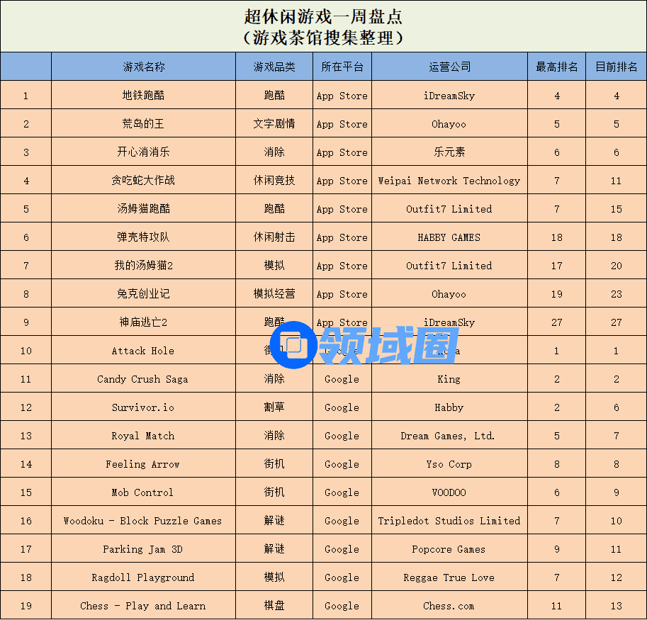 超休闲游戏:多款老游霸榜,Ohayoo两款产品登榜