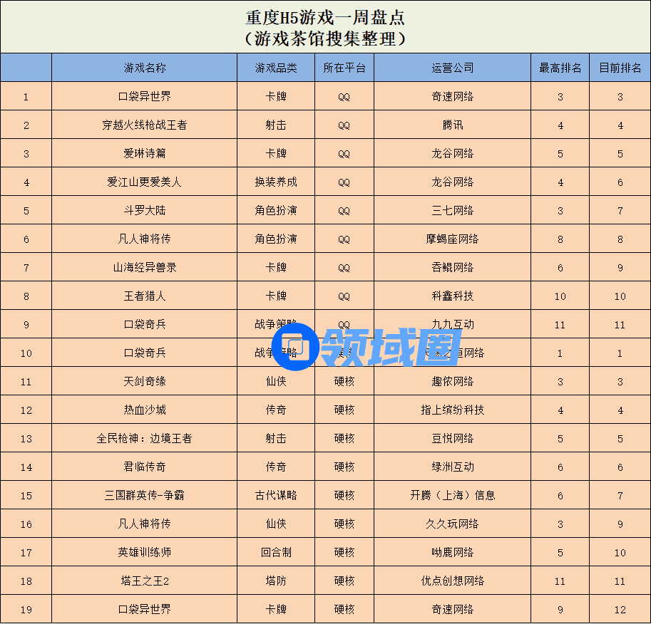 重度游戏方面,QQ小游戏榜单中,奇速网络旗下的《口袋异世界》登顶QQ硬核魁首席位,《王者猎人》排名上升,再次拿下QQ畅销榜第10名的好成绩;硬核小游戏中,战争策略游戏《口袋奇兵》稳坐魁首,来自优点创想网络的塔防游戏《塔王之王2》冲上硬核热门榜TOP11。