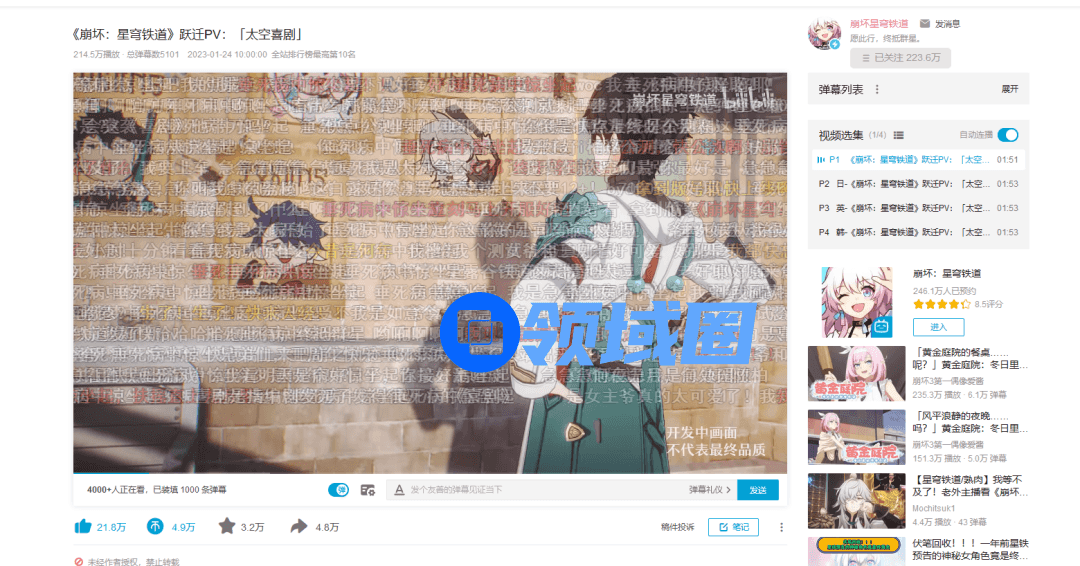 当《无名》、《流浪地球2》、《满江红》、《深海》四大金刚在春节档杀得火热的时候,米哈游新作《崩坏:星穹铁道》(以下简称《星穹铁道》)连带着一条“喜气洋洋”的三测PV《太空喜剧》迅速窜了上来,不到半天B站播放就破了200万,让大年初三的游戏圈似乎也提前“卷”了起来。