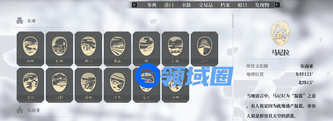 玩家需要收集的维度十分之丰富,在本作的图鉴中,我们可以看到,最基本的有各个码头口岸的特产情报,港口之间的快速航道,在当地有较高名望时,也可以解锁一些准限制的交易品。实际上,主角船队对于整个世界的影响也是玩家所希望看到的,如果能够第一时间买空港口的农工商品,就可以为城市的经济发展做出重大贡献,从而成为船队的根据地,源源不断地提供大量优质外贸品。