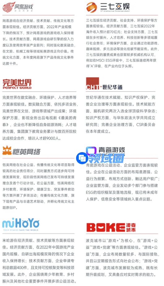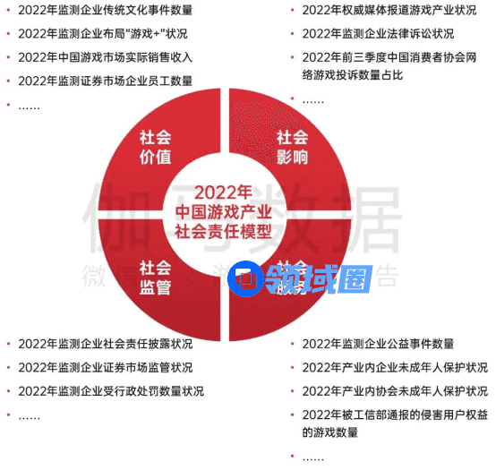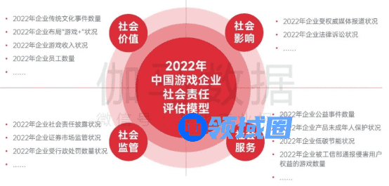 伽马数据依据模型评选出部分本年度“社会责任表现突出企业”。模型构建上,伽马数据从社会价值、社会影响、社会监督、社会服务四个维度构建企业社会责任评估模型,企业模型的维度选取与产业模型一致,仅在具体考核项目上进行调整。