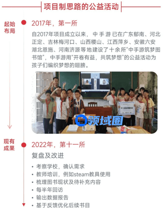 中手游在公益活动、传播社会责任意识等方面履行社会责任。公益活动方面,企业以项目制的思路对待重点公益事件,典型案例为“中手游筑梦图书馆”,该项目中手游投入时间和资源均处于较高水平,并持续围绕项目进行复盘及优化,进而建立了完善的公益项目执行体系,长期来看项目的每一次落地都将带来更好的效果。中手游将公益活动作为企业的长期项目,并对其执行过程和效果持续负责。这一思路也值得更多公益项目借鉴,游戏企业可借助完善的公益活动经验,进而帮助新项目预警薄弱环节、完善重点环节的准备,全面推动更多公益项目的执行效果。传播社会责任意识方面,中手游通过内部招募志愿者的方式参与更多社会责任相关事件,这也有助于强化员工长期社会责任意识,现阶段志愿者占中手游员工数量的10%以上;此外,中手游在企业监管、传播传统文化、人才培养等方面的布局也有进展。