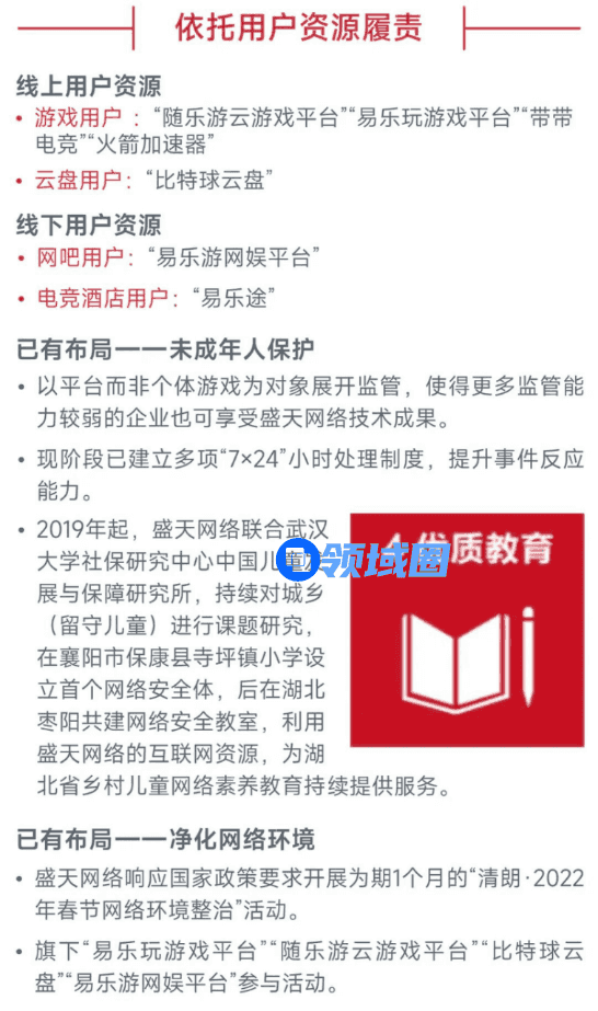 盛天网络在传播传统文化、助力性别平等等方面履行社会责任,同时,报告也看好企业依托用户资源强化社会责任履行的潜力。传统文化方面,盛天网络参与开发“云尚南孔”数字化应用,为用户提供通过VR技术实景参观衢州孔氏南宗家庙的场景;助力性别平等方面,女性从业者占企业高管人员比重约50%、中高管比重约三成,同时直接推出相关计划保障女性员工权益。用户资源方面,盛天网络旗下产品覆盖了较多用户,较广的触达对象将使得企业无论是强化正向宣传,还是加码社会监管,都有望扩大社会责任履责效果,现阶段企业已在未成年人保护、网络环境等方面有所产出,未来有望拓展至更多事件。
