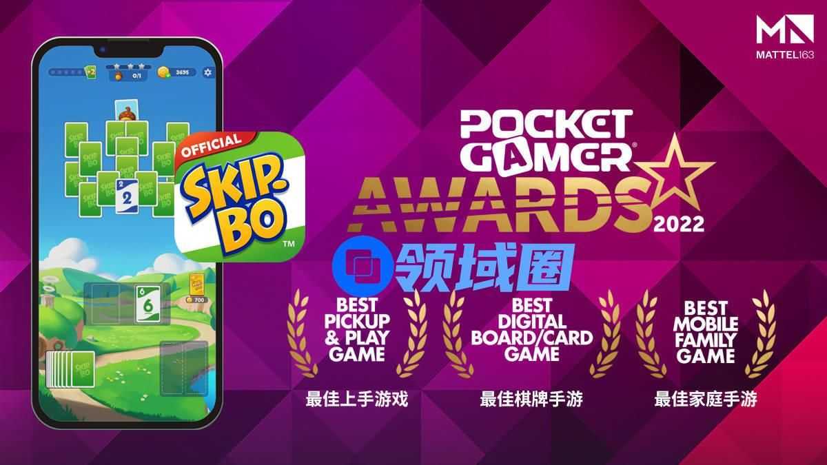 近日,PocketGamer 2022年度游戏颁奖典礼圆满结束。美泰163旗下的Skip-Bo手游惊艳四座,荣获 “最佳上手游戏、最佳棋牌手游、最佳家庭手游”三大奖项!