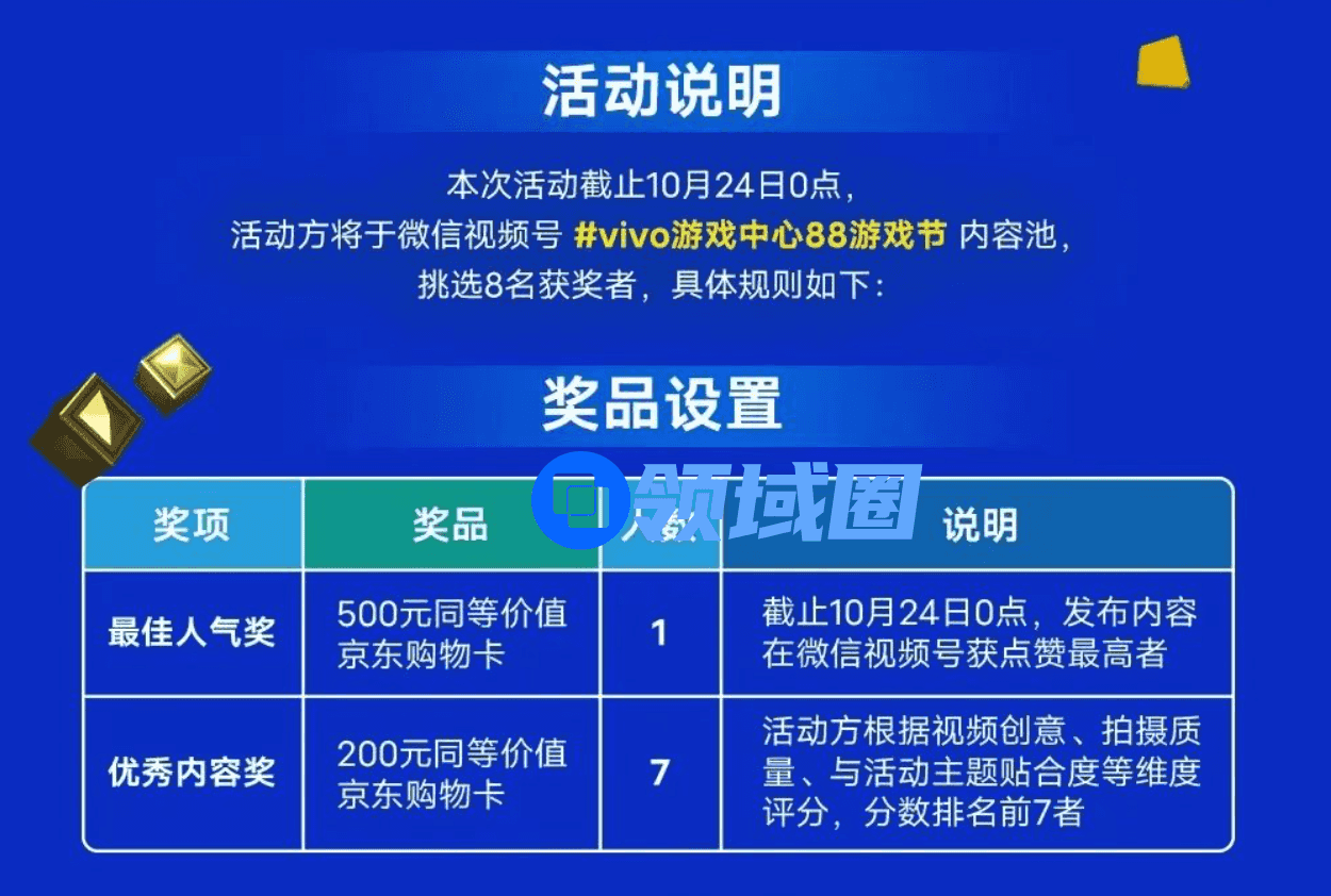 线下赛事精彩纷呈,线上互动同样精彩。vivo游戏中心88游戏节也在线上带来游戏节主题馆活动,通过线上打卡、抽手机大奖、还有赛事直播、论坛互动等不同类型的方式,为玩家送上线上福利。参与以#vivo游戏中心88游戏节#为话题在微信视频号平台的内容征集,更有“最佳人气奖”、“优秀内容奖”拿不停。