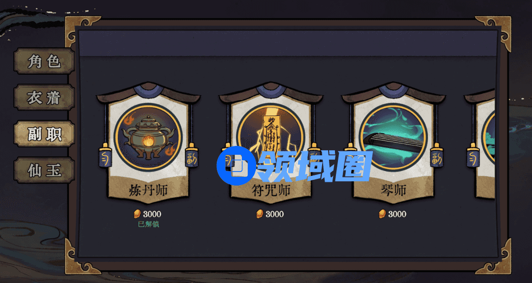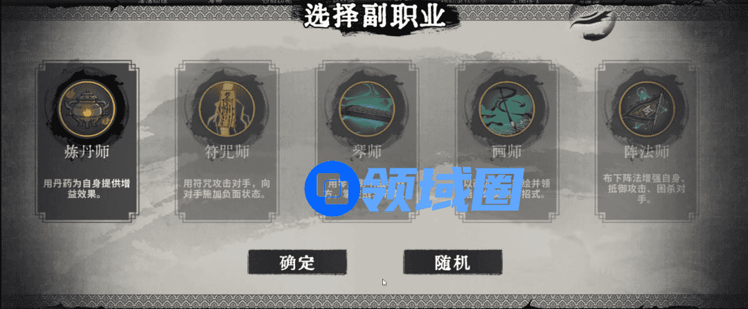 在敲定完角色之后,还需要玩家选择副职的牌库,副职分为炼丹师、符咒师、画师、琴师以及阵法师。炼丹师主打一个消耗品,加血加防;符咒师主要依靠通过符咒输出或者提供增益减益效果;画师则是靠随机效果来给自身或敌人提供增益减益,琴师是给双方同时提供同样的属性,阵法则是提供持续数次的增益或减益的效果。