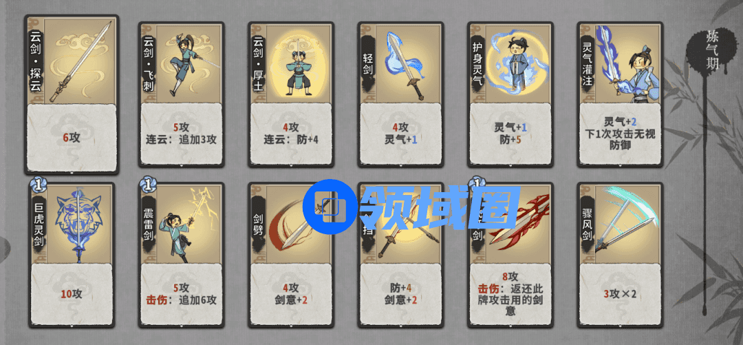 灵剑类别的卡提供的效果会根据你的灵力来决定,灵力可以简单理解为蓝条,也有许多卡不需要消耗灵力,就比如云剑类型。