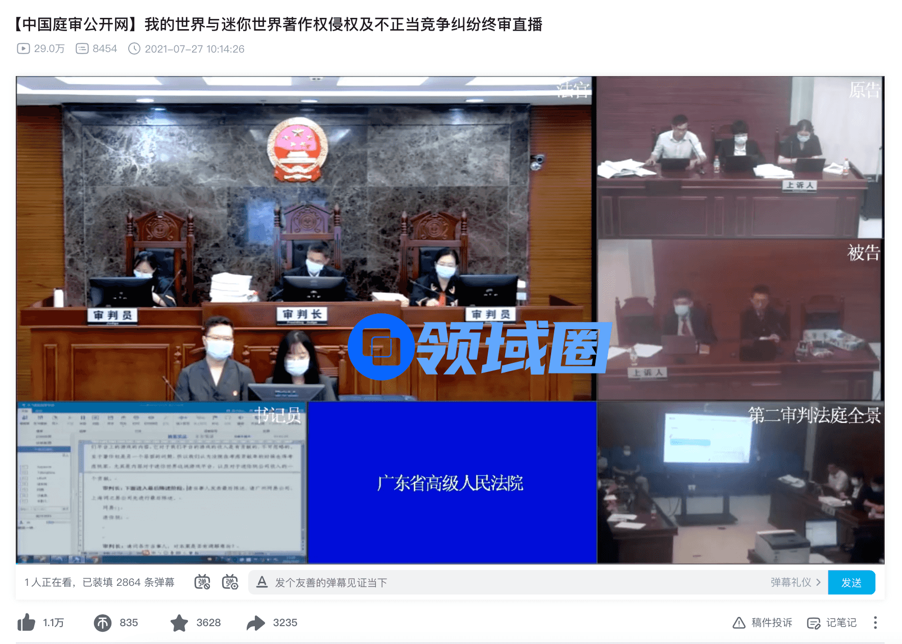 早在2019年,《我的世界》就对《迷你世界》的侵权行为提起了诉讼,并由深圳市中级人民法院作出了一审判决。判决表示,深圳市迷你玩公司所运营的《迷你世界》构成整体侵权,应立即停止侵权。一审判决过后,双方针对判决结果再次提起上诉。2021年7月27日,广东省人民高级法院对此案件进行了二审开庭审理,此案受到社会各界的高度关注。