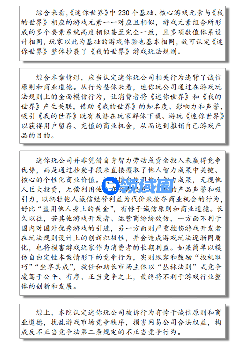 且根据《我的世界》最新公告所附上的终审判决书,广东省高级人民法院还指出了如下图要点:
