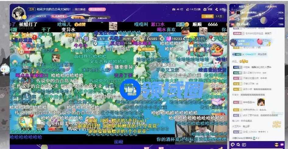 公测的第二天(11月22日),知名UP主@花少北 、@KB呆又呆在B站进行联合直播,在“合合岛”大搞基建,PK合成手速,笑料十足的“双人相声”将直播观看人数最高推到了近120万人次。直播结束后,粉丝们自发将直播录屏进行二创剪辑和传播,把游戏讨论热度推向了又一波高潮。
