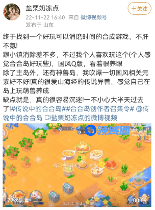 国风元素和经典合成玩法“双管齐下”,《传说中的合合岛》上线后迅速斩获了大量的玩家好评,不少玩家对其评价:魔性上头、合到停不下来。