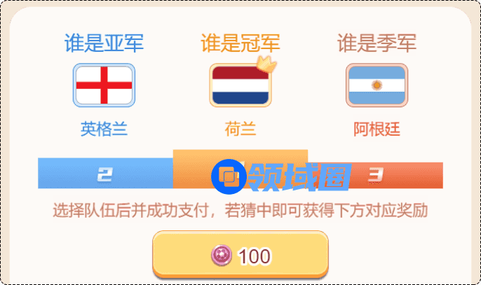 在活动期间,参与“世界杯冠军”助力,支付100银球币,即可选择您心目中的世界杯冠军、亚军和季军!