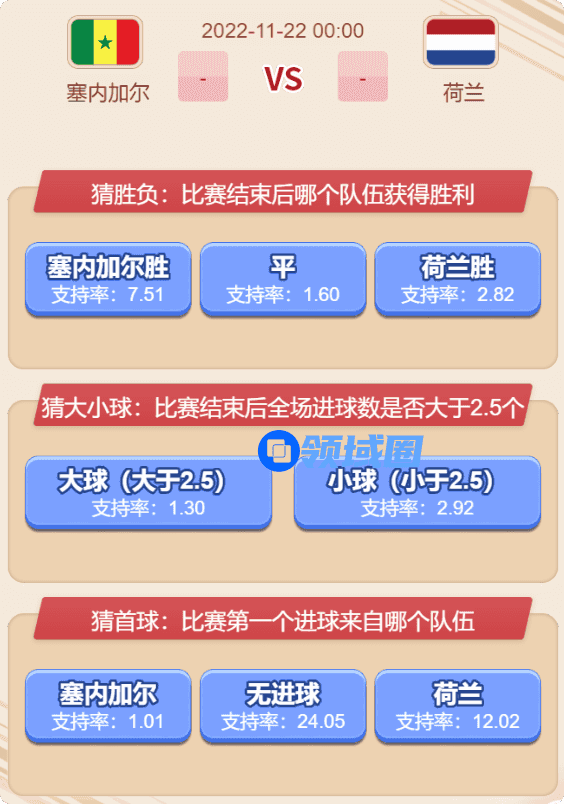 例如:假设在“瑞典”对战“韩国”的比赛中,双方在常规赛时间内的比分为“2:1”,总进球数为“2+1=3”,则该场比赛的总进球结果为“小球”,助力“小球”的玩家助力成功并按照助力数额与最终支持率获得收益。