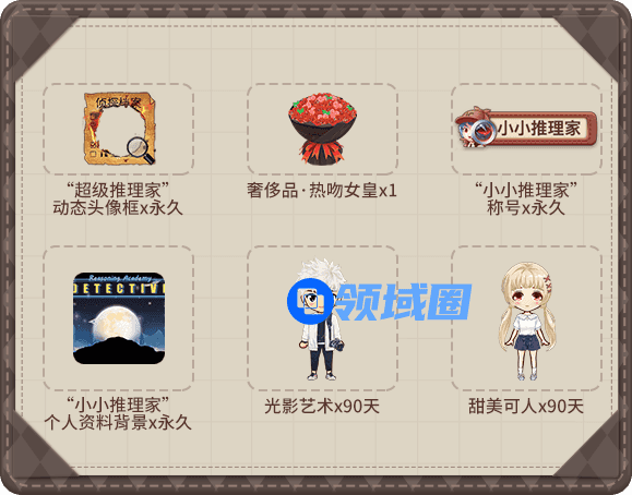 快来参加独特的“推理猜猜猜”活动吧!活动期间每天10:00,《推理学院》官方客服将会通过“动态广场”发布每日猜测图并置顶,猜测图片的真实内容,大声说出它的名字吧!只要您成功输入正确答案,即可领取一份“每日猜猜嘉奖”礼包!当然,每天首位回到正确的玩家,还会额外获得“玫瑰花海x1”!