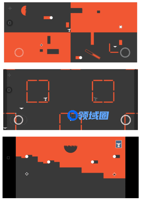 而在这个潜在的表达冲动之外,《双相》在初期仍然是机制先行的。在头脑风暴阶段,蔚然绘制了一张草图,草图中的矩形和圆形被分为两半,各自染上不同的颜色。而这些几何形在不同的底色映衬下呈现出全然不同的样貌。蔚然说:“世界就是这样,是纷繁的、复杂的、多色的,只是在不同人的认知中呈现出不同的形态。这也正是我想要传达的。而简约地把世界‘塌陷’到两色,给予了这个原型机制性的一面和更丰富的设计可能。”此外,蔚然表示《双相》的概念阶段,也受到了《Hue》《纪念碑谷》这些前人经典作品的启发和影响。
