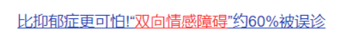 在网上以“双相”为关键词搜索,出现的是“自杀率最高”、“六成双相被误解为抑郁”。