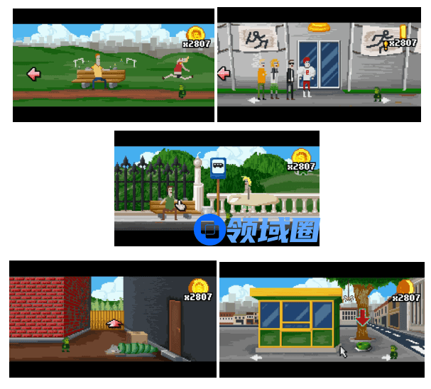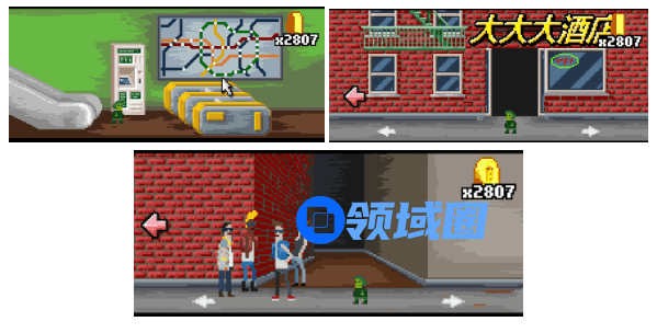 接着,你就不必抱有太大精神包袱,只要和像素哥一起在小城镇里闲逛即可,没事踢下人屁股,或者对着盆栽表达“人有三急”。你可踏上列车,或者一路左行走进电玩城、大酒店和停车场,潜入地铁……解锁一段段主题式解谜之旅。