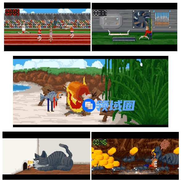 它的解谜体验就像看美式情景喜剧一般,每一个单元集又有5~9个小场景。有时是现实场景,如交通主题,玩家将研究如何在限定时间内从即将坠落的飞机或火车里逃生;又或是体育主题,暗想在比赛中如何赢得第一。更多时候是荒诞的超现实场景,如动物世界主题,帮助老鼠引开洞外的猫,或者是蚁巢逃生记。