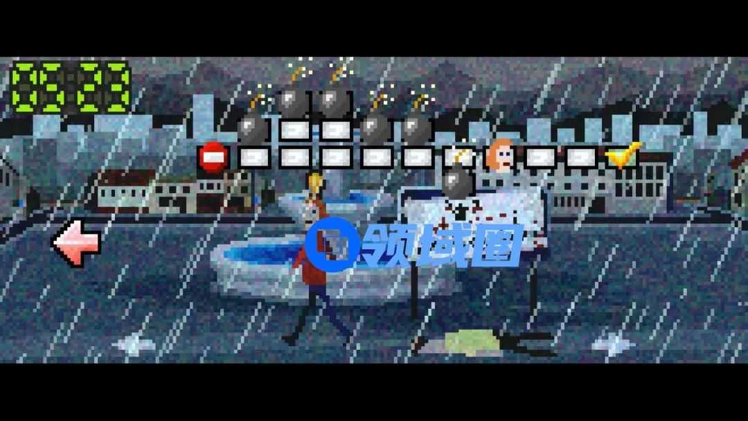 这种限时反应玩法看似有些像《瓦里奥制造》,但《像素哥3》里不存在真正的死亡,只有真正的“坐牢”。因为每段旅程,在拯救完所有坏结局之前,未通过的关卡都将循环播放,这时玩家会感到非常着急,比如我就卡在某个关卡近两小时。玩家也只有等到真的“拯救世界”,才能看见像素哥贱兮兮的胜利姿势 。