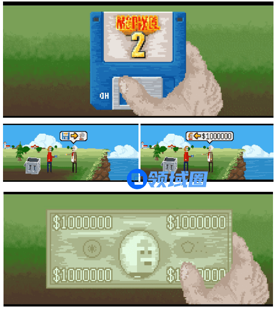 玩家在游戏里的确能感到“真金实银”的快乐和作者的慷慨。谁能想到那部被跳过的《像素哥2》居然作为游戏彩蛋出现了,而它竟为玩家带来百万美金的收入。