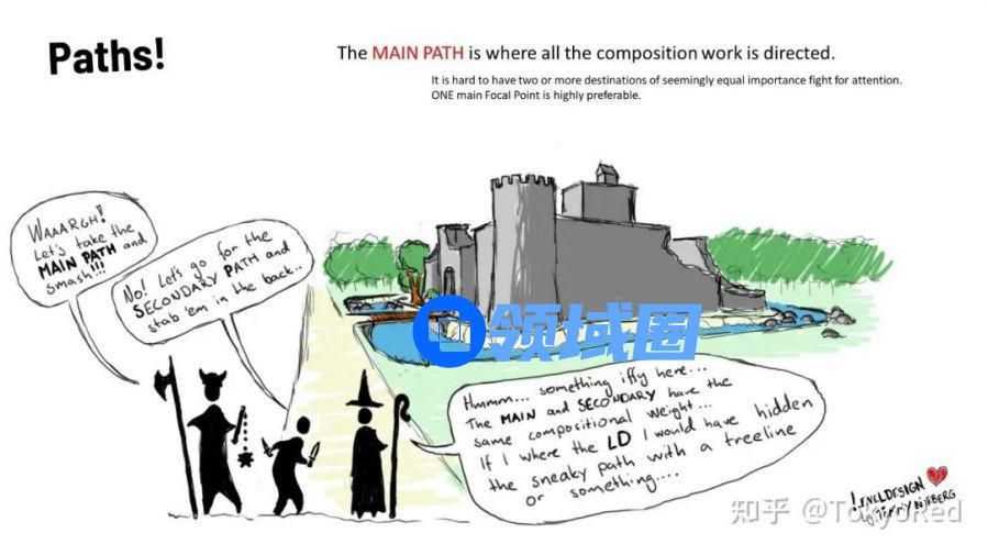 更好的设计是:突出城堡的某个入口,而让另一条路径被诸如植物之类的遮蔽起来。