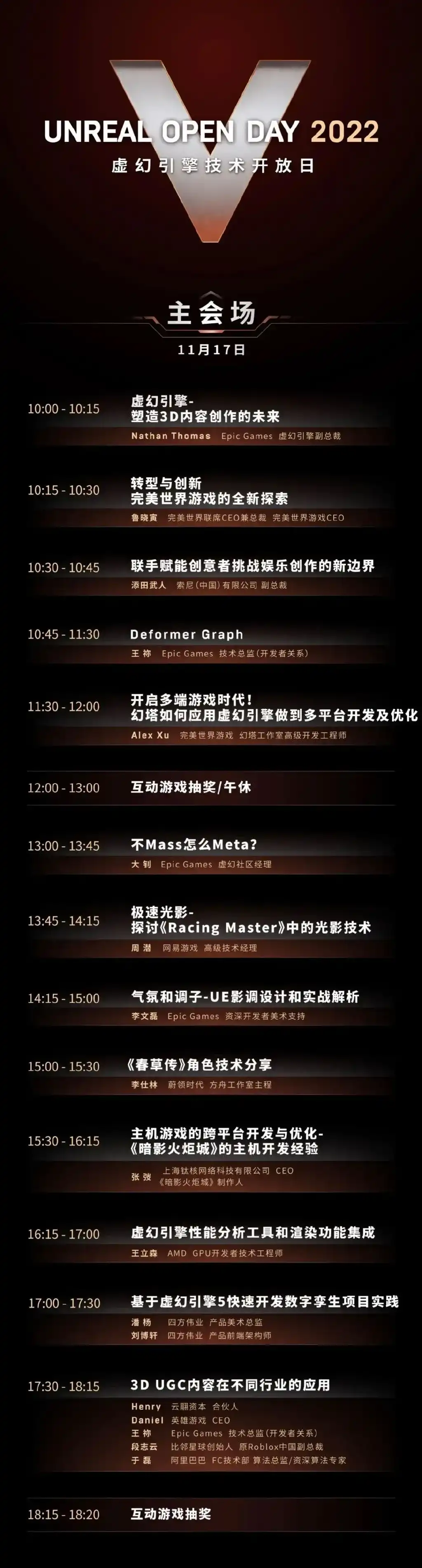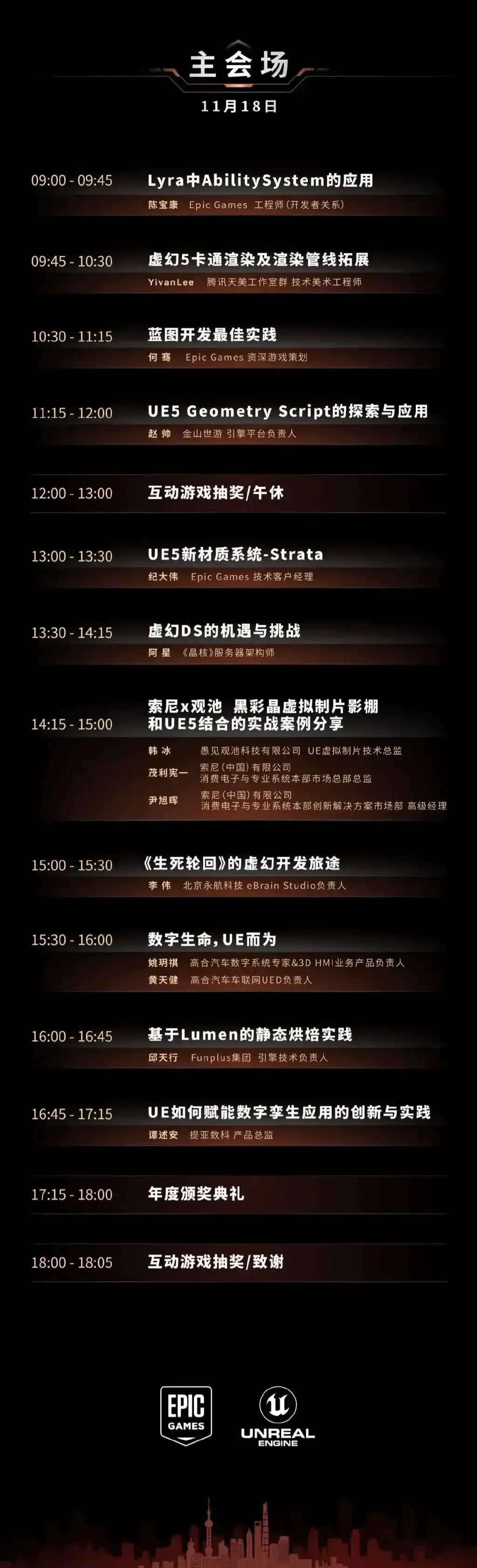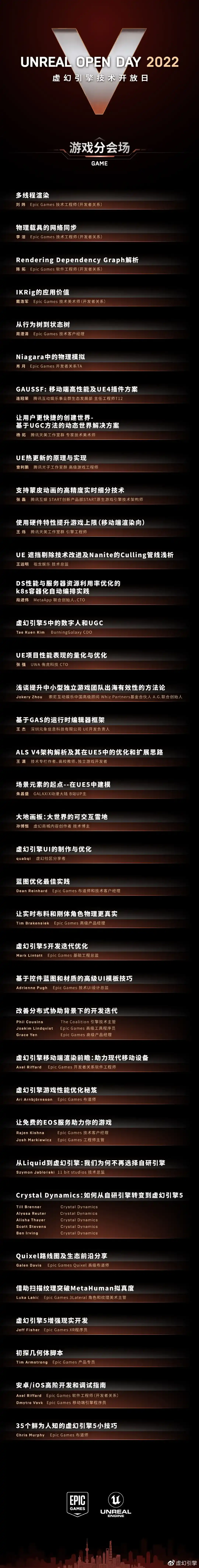 当然,今年的UOD也不仅仅是细数UE5的过往成绩。作为引擎行业的一大盛会,技术交流和硬核干货分享是UOD的传统。目前已公布游戏主题议程中,关于虚幻引擎的创新开发心得和实际案例应用占据了相当大的比例,从中也可预见领先的引擎产品对于游戏行业未来发展的牵引作用以及二者愈加相伴相生的密切关系。
