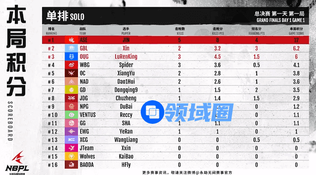 虽然,BAODA.HFly因为前期过于谨慎的打法,在最终的击败分上落后于OC.XiangYu而没能拿到本局第一,但这对于他来说也是一个好的开始,相信之后也能给观众们展示出更多精彩名场面,各位小伙伴们敬请期待吧!