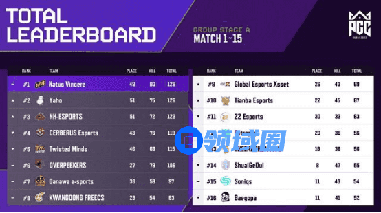 最终凭借NH战队的稳定发挥,NH战队以72个淘汰数和123分坐稳A组第三名的位置,成功晋级胜者组的康庄大道;反观Tianba战队仅在第三日吃到一鸡,以45个淘汰数和67分排在A组第十名,跌落败者组。