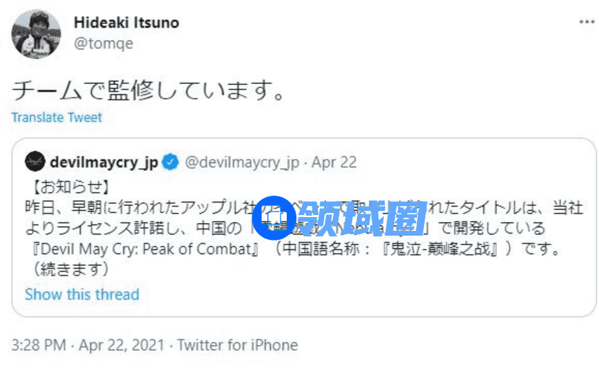 大家好,我是鬼泣系列制作人,伊津野英昭。