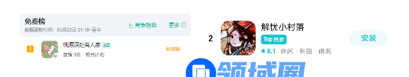 下载量较高的新品数量仅有两款,分别为古德工作室春节档取得开门红的《解忧小村落》(以下简称《解忧村落》),以及3月末来自五十一区的黑马《桃源深处有人家》(以下简称《桃源》)。两者都是国风经营类游戏,游戏内循环核心均为生产资料的生产与加工,不过前者倾向经营策略性,后者更注重”创物“(建筑)的收集和布置。茶馆也曾沉迷于这两款游戏,并曾对团队进行了采访。除此之外,更多新游聚集在Tap平台10万以下的下载量区间。