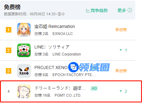 除了日韩地区,台湾地区市场也具有模拟经营品类的基因。去年的休闲爆款《肥鹅健身房》在近日加入竞争,6月1日上线后今日在免费榜第三名,畅销榜28。此外,三七互娱去年则上线了一款《营业中!旧时光商店街》,今日畅销榜排名31,此外点点互动的《菲菲大冒险》《冰封时代》今日分别在畅销榜排23名与26名。