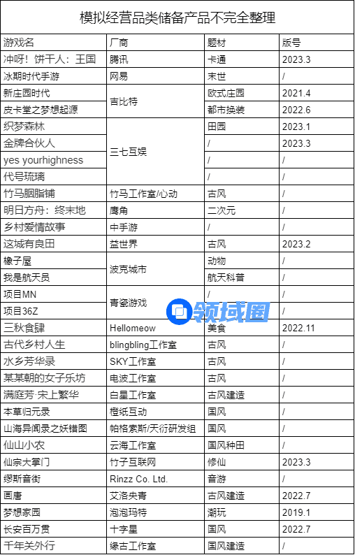 在2023年已经上线的模拟经营手游以外,目前在厂商的预备游戏库中仍有不少在研新品: