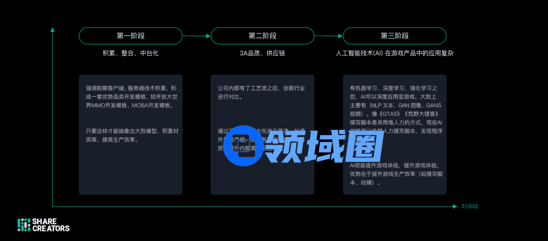 本阶段强调前期客户端、服务端的技术和资产的积累,从而形成一套优势品类开发模版,如开放世界MMO开发模版、无缝大世界MMO开发模版、MOBA开发模版等。