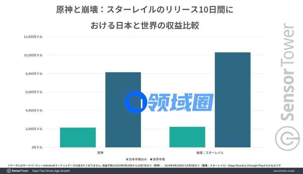 Sensor Tower也将《崩坏:星穹铁道》和《原神》在日本推出时的数据进行了比较,《原神》在日本上线10天内营收超2100万美元,两者几乎不相上下。不过把范围放到全球后,《崩坏:星穹铁道》以1亿美元的收入超过《原神》8100万美元的收入,相差近2000万美元。
