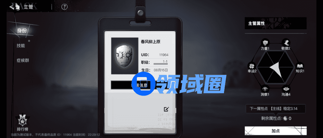 比如为了突出玩家的“主管”身份,在介绍界面呈现给玩家的是一个亲切的“工牌”,右边则是玩家的人格面具,会随着游戏的推进不断成长,在主线和部分玩法中根据人格指数的不同会影响游戏的剧情推进甚至结果。