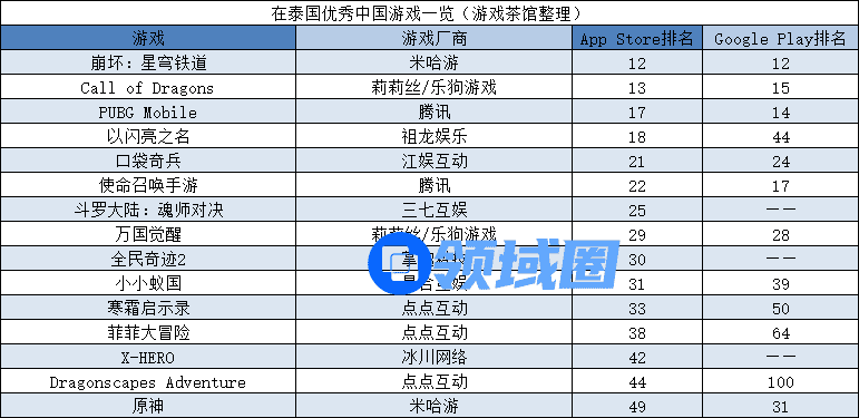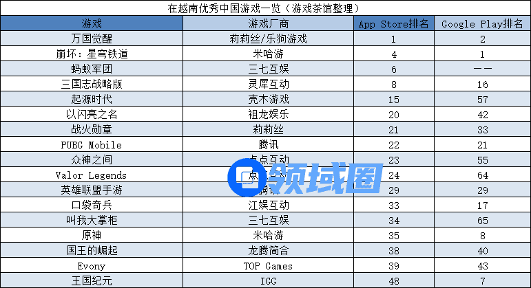 从本期榜单情况来看,莉莉丝/乐狗游戏的《万国觉醒》和米哈游的《崩坏:星穹铁道》分别是本期出海越南和泰国的国产游戏中的收入榜首。
