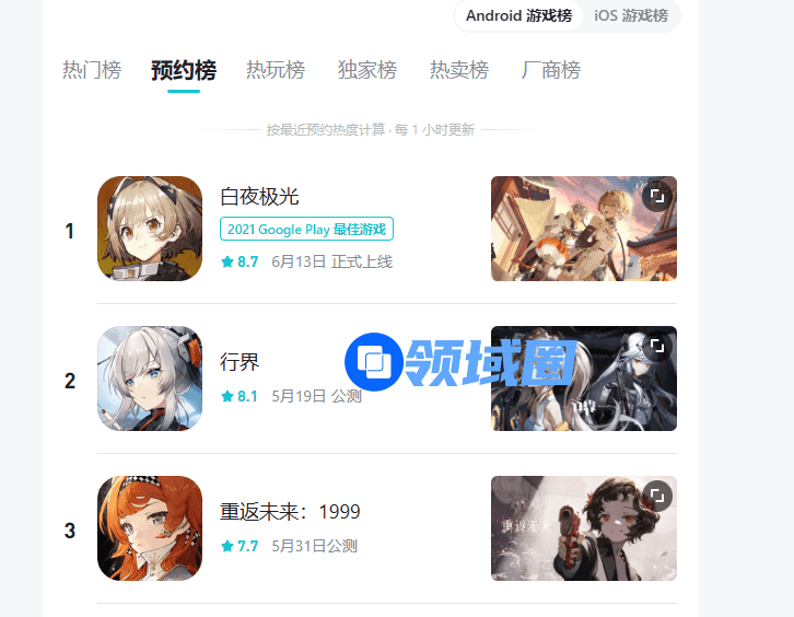 各大游戏预约渠道《白夜极光》国服冲上前列,目前全网预约量已经突破400万。在TapTap,《白夜极光》国服成为当日预约榜第一。