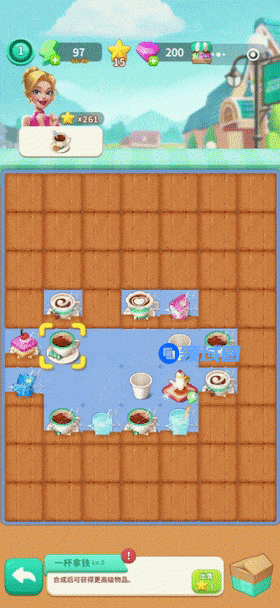 此外,一款二合+家居改造玩法的小游戏《改装大挑战》也在本周成功跻身榜单前列,且其当前位于人气榜第6名。《改装大挑战》讲的是一个被背叛的女人,离开家门独立经营自己新家的故事。游戏中,玩家要通过二合的方式,帮助女主得到想要的咖啡、蛋糕等食物,从而获得星星奖励,还可以花费一定数额的星星帮助女主完成新家的家居改造。该游戏玩法整体以二合与家居改造为主,且画风上面也和其他merge类产品一样,采用了明亮的欧美卡通风格。