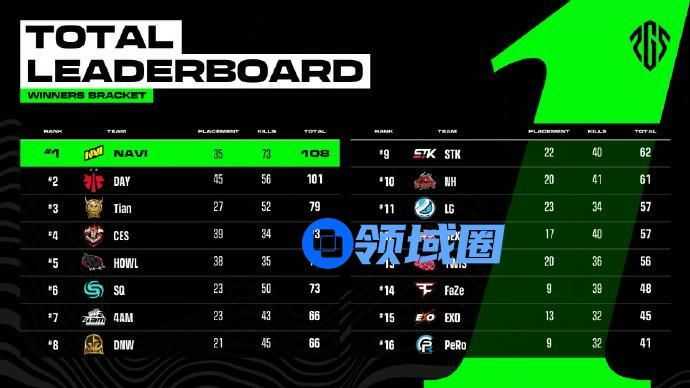 胜者组赛中4AM战队状态依旧火热,尤其在面对STK战队时还打出了一波一穿四的精彩操作,同时,十分稳健的策略运营,也让4AM战队能够拿到足够分数排名成功晋级;Tianba战队在首日第三局比赛中面对HOWL战队和CES战队时稳住枪线,逐个击破对手拿下一鸡,并在第二天的比赛中让自己的分数达到74分排在第三晋级决赛;而NH战队在关键团战面对NAVI战队时,无奈所处位置不佳被NAVI战队狙击出局,错失晋级机会;PeRo战队在跳点时与TM战队和PTG战队的冲突导致其在排名分上没能拿到很好的成绩,与NH战队一同跌落败者组。