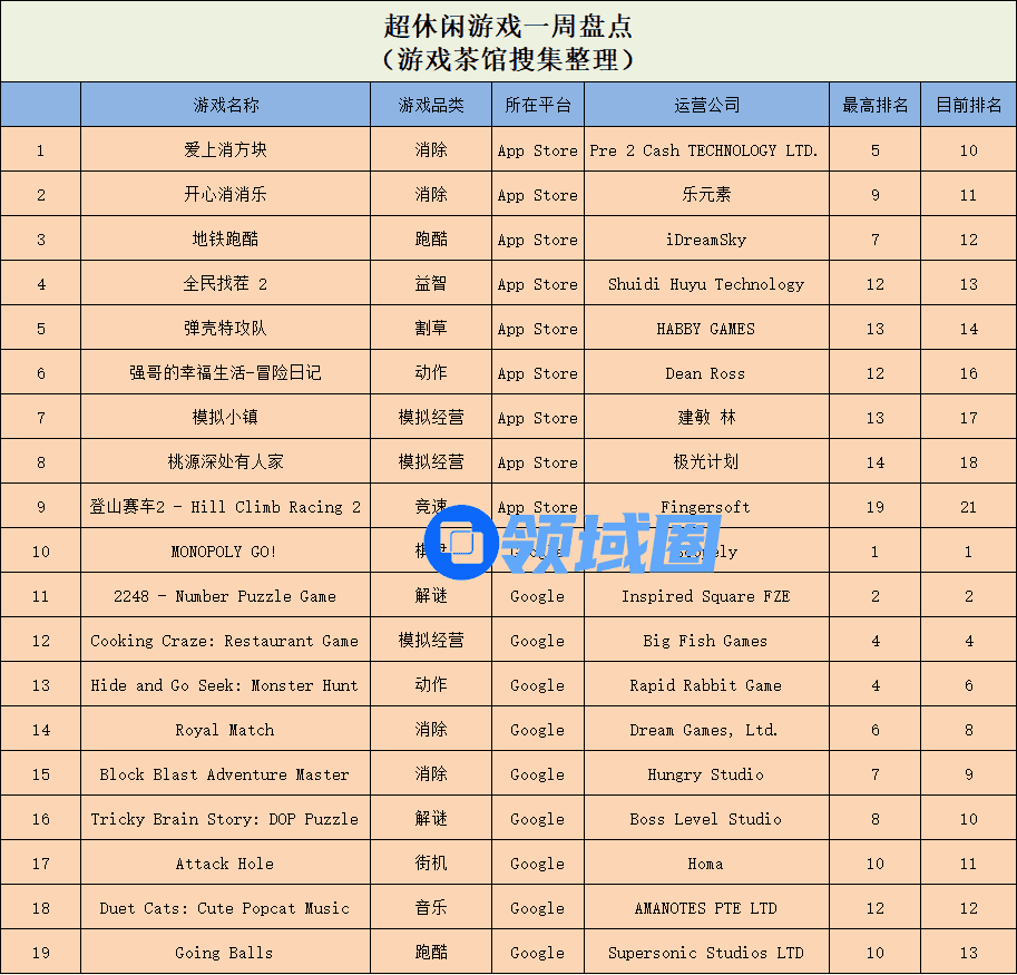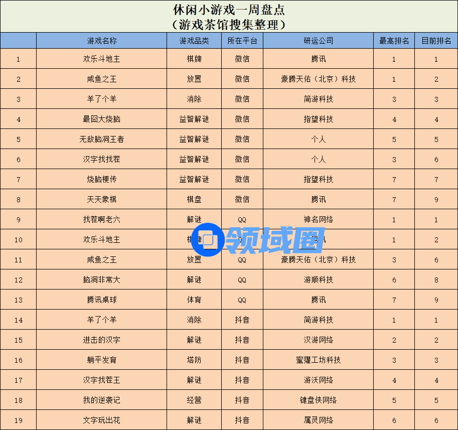 休闲新游周报每周统计微信小游戏、QQ小游戏、抖音小游戏、硬核小游戏以及App Store和Google Play上的新游爆款,并按照分类制作表格,将游戏排名情况等信息公布,希望给到行业同侪帮助。