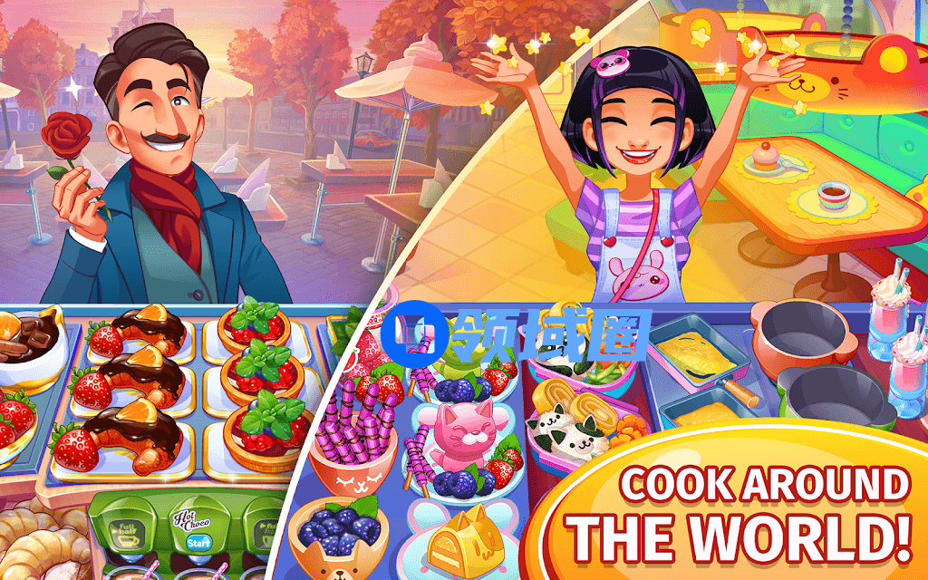 《Cooking Craze: Restaurant Game》是一款2017年就上线了的老产品,可以说是一众美食制作经营游戏的老前辈了。该游戏的核心玩法与其他美食制作类产品类似,玩家只需要根据顾客需求,制作出各种美食即可获得金币奖励。但和其他游戏不同的是,该游戏准备了全球各地的、不同的代表性菜肴与美食,比如汉堡、炭烤披萨、寿司、拉面、饺子等,玩家在解锁一个新地区之后,就可以探索学习当地的新菜谱,制作新的菜品。