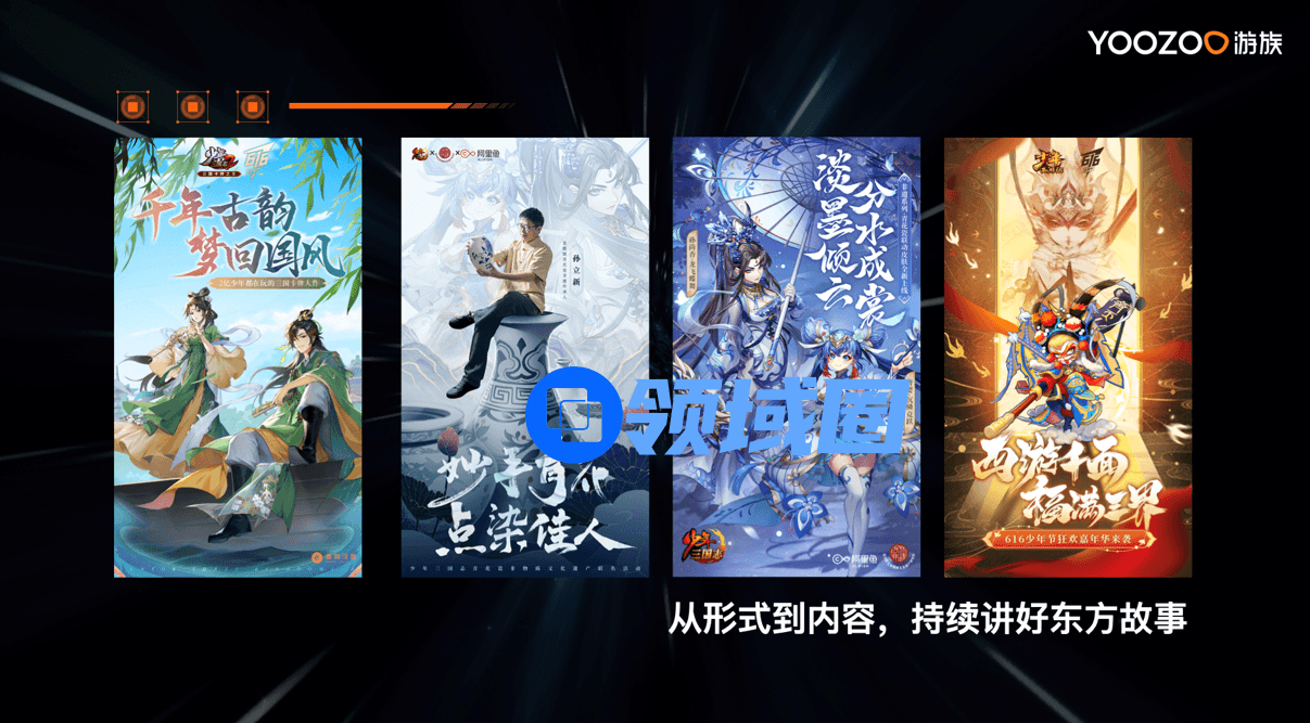 2022年,游族旗下《少年三国志》《少年三国志2》《少年西游记》《少年三国志:零》等产品跨界联动青花瓷、脸谱、蜀绣、京剧等非遗IP,将丰富的国风元素融入游戏,不断推出游戏限定活动,将中华传统文化传递给全球玩家。
