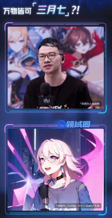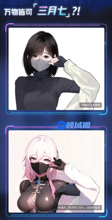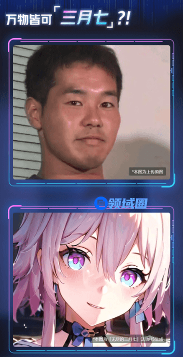 按照米哈游的说法,这款自研的 AIGC H5工具,可以把玩家所有上传的图片都变成《崩坏:星穹铁道》的看板娘三月七。原本我以为这仅仅是为《崩坏:星穹铁道》准备的一次整活活动,然而在使用了几次之后,我只有一个感受:那就是真香。