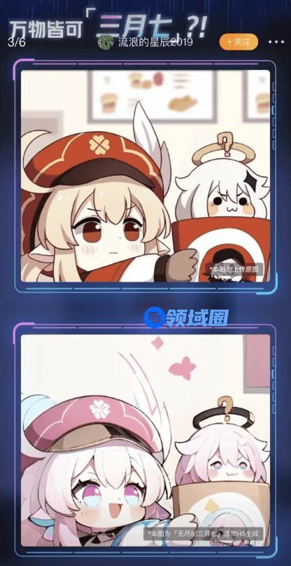 其实从上述的实例中不难看出,米哈游的这款AIGC不仅可以对真实人像或是虚拟人像进行转化,甚至连肢体部位也能做到一比一的还原。此外,当玩家上传一些Q版图片或是表情包的话,也会同样生成相似风格的三月七。