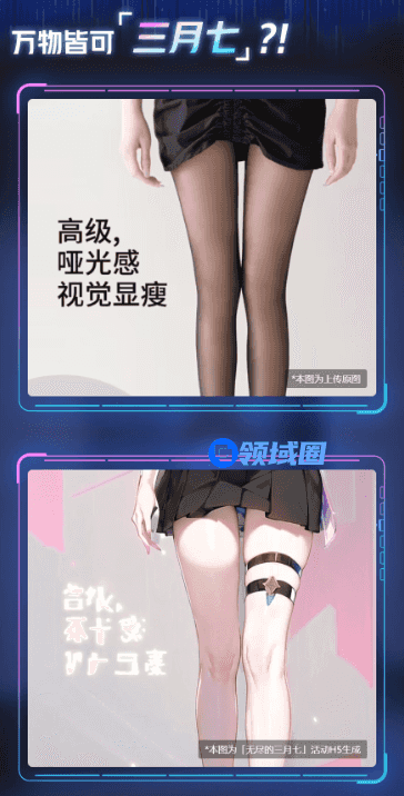 三号选手的口味有点“特殊”,竟然直接放上了一张腿照。而咱们这边三月七的表现也丝毫不让人失望,不仅还原了裙子的样式,微微勒肉的腿型丝毫不落下风。我只能说,她实在太懂了。